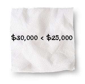 Dan was having none of it though. He continued to insist that $30,000 was greater than $25,000. Since I knew that my Idaho education was far superior to his, I gave Dan one last chance to get on board. I said “Dan, this boat’s a sinken and you either get on board or you don’t.” Dan didn’t get on board. The next day Dan cleared out his desk.
