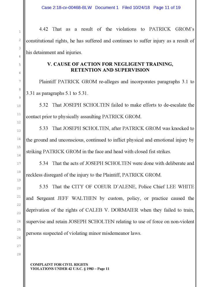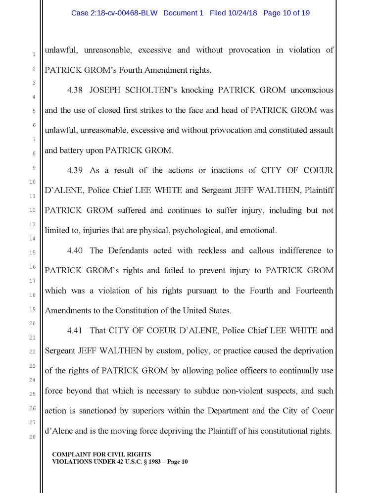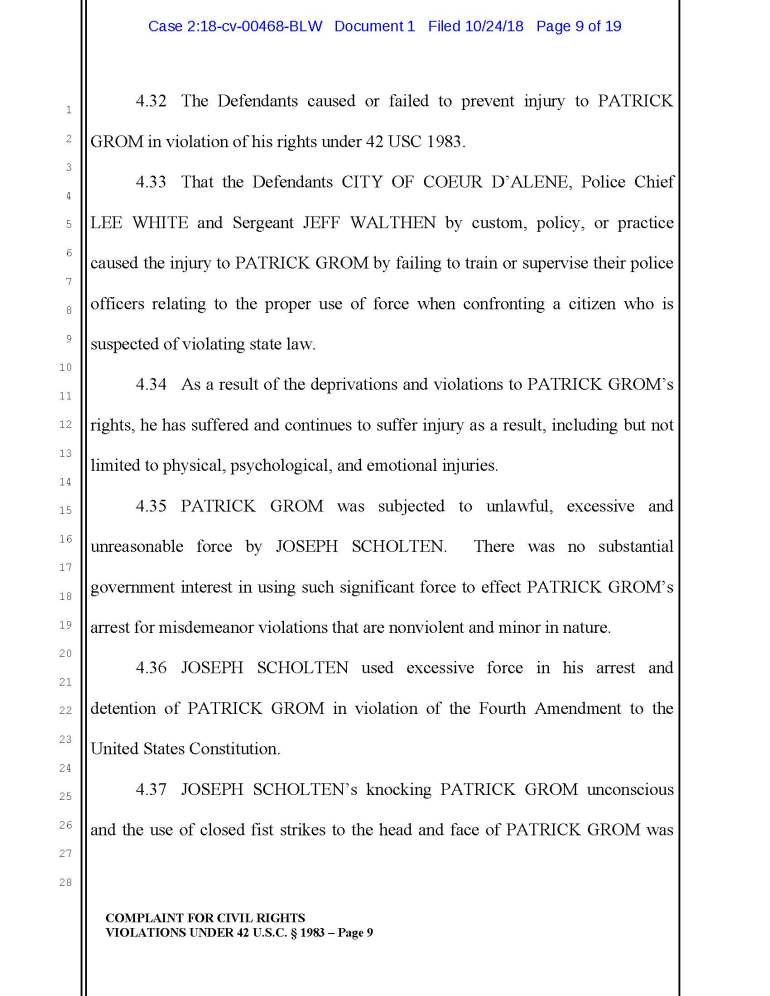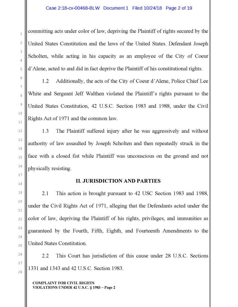 According to a recent lawsuit against Joseph Scholten, Jeff Walthen, and Lee White of the Coeur d Alene Police Department, apparently ol’ Joe thinks it’s OK to punch an unconscious guy in the head.