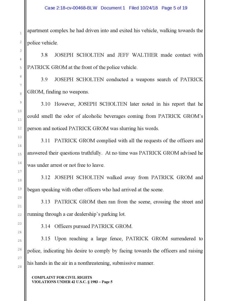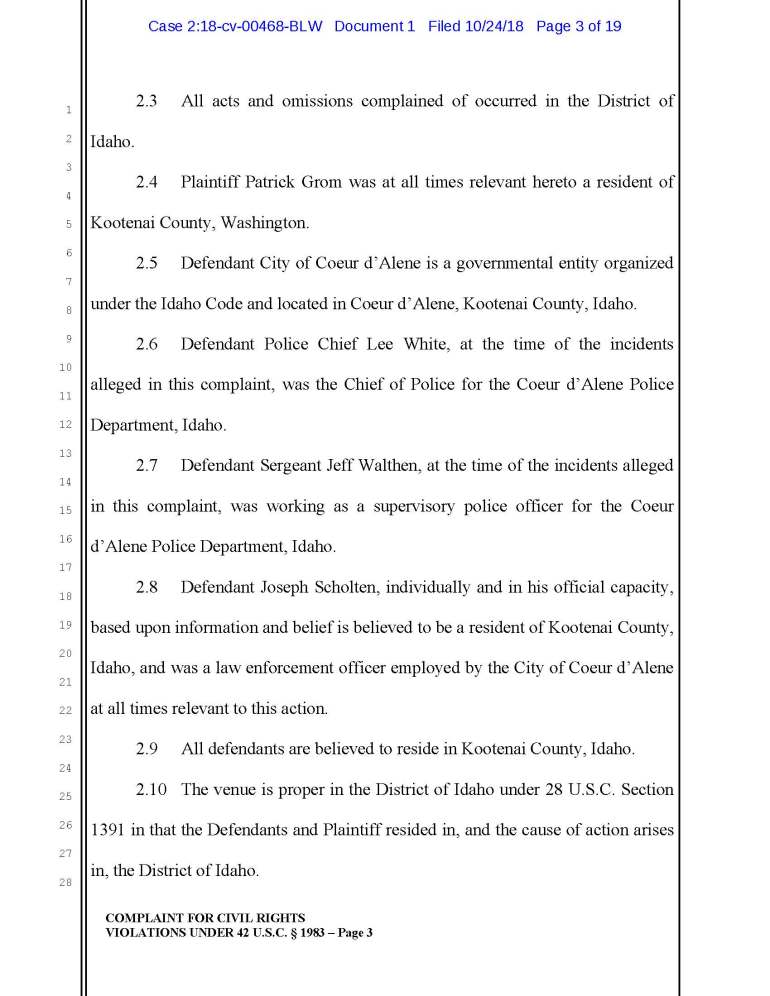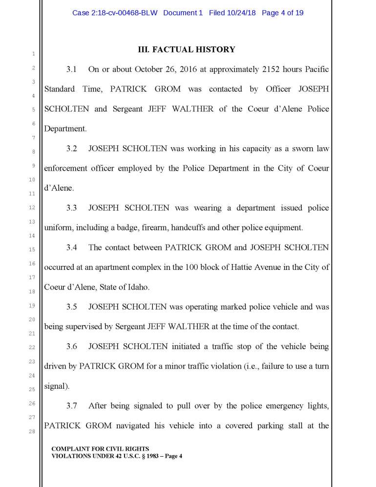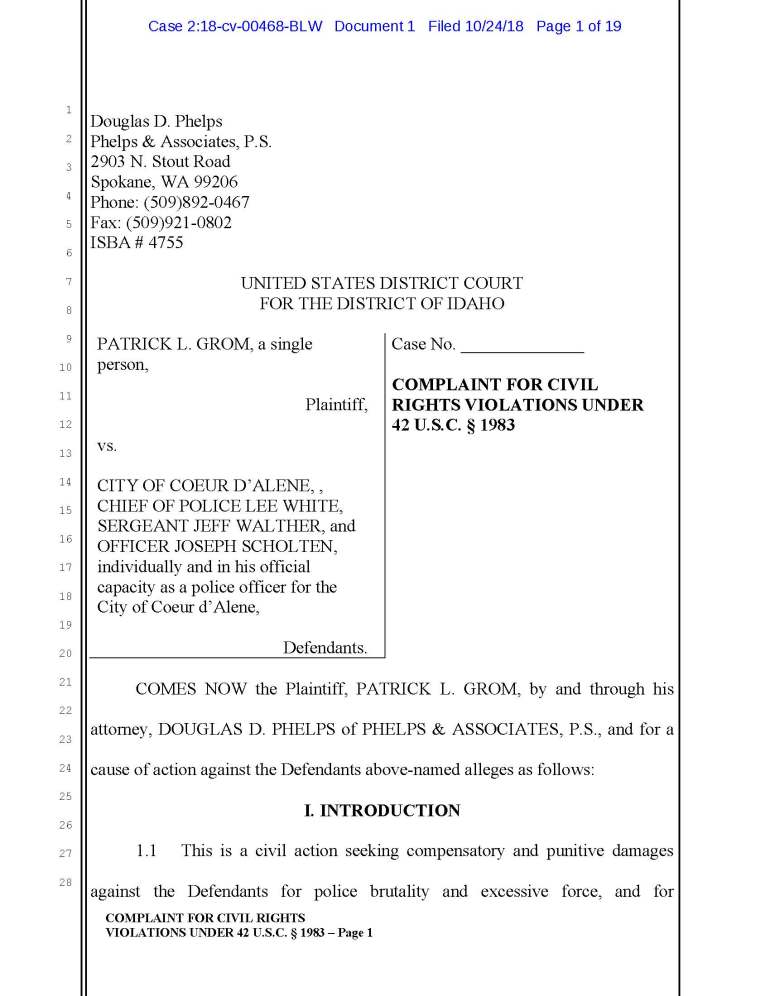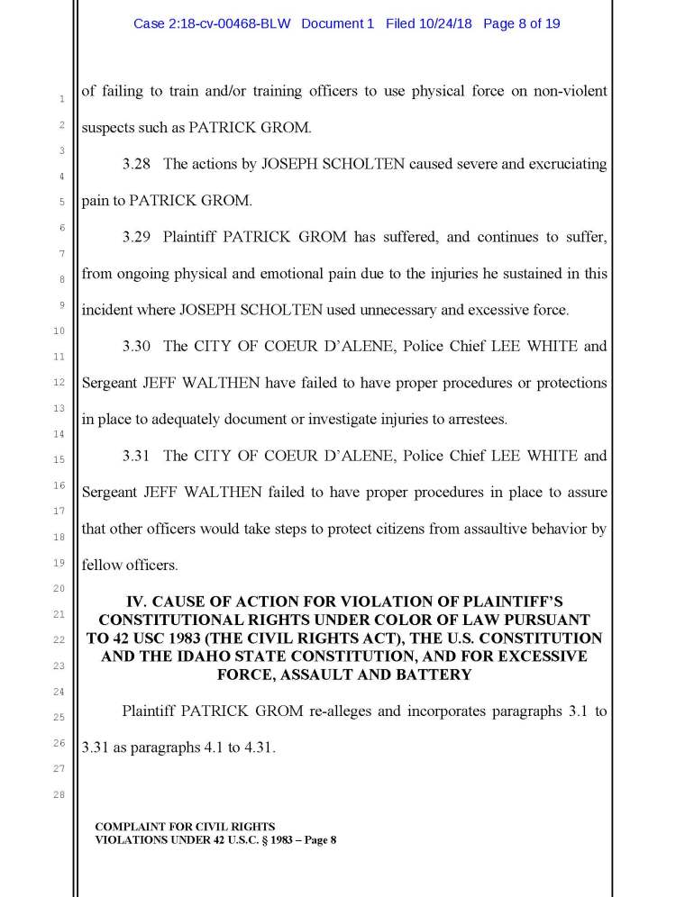 According to a recent lawsuit against Joseph Scholten, Jeff Walthen, and Lee White of the Coeur d Alene Police Department, apparently ol’ Joe thinks it’s OK to punch an unconscious guy in the head.