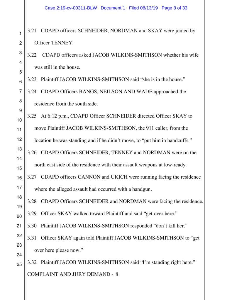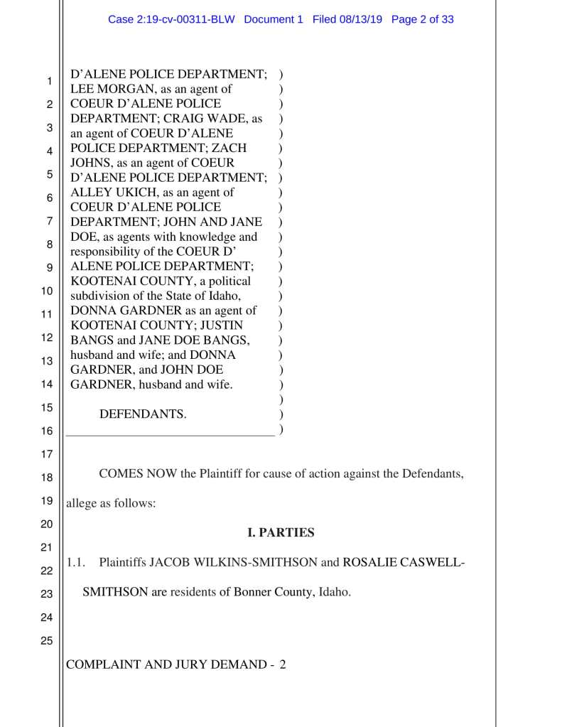 JACOB NIELSEN, as an agent of COEUR D’ALENE POLICE DEPARTMENT;