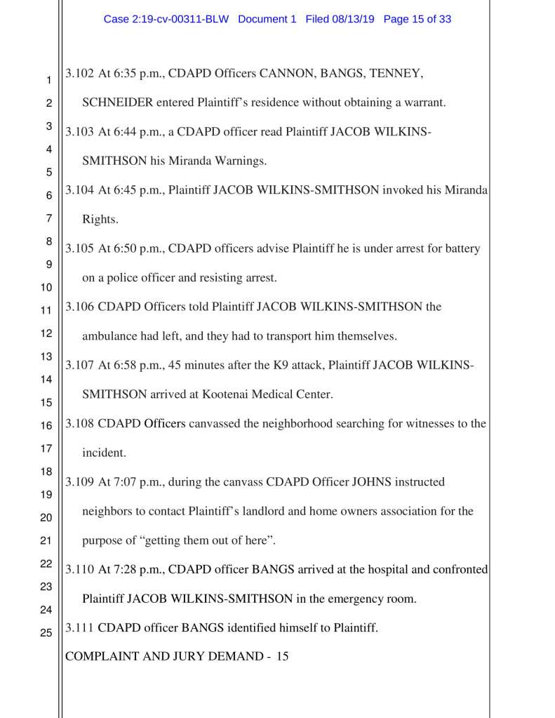 ZACH JOHNS, as an agent of COEUR D’ALENE POLICE DEPARTMENT;