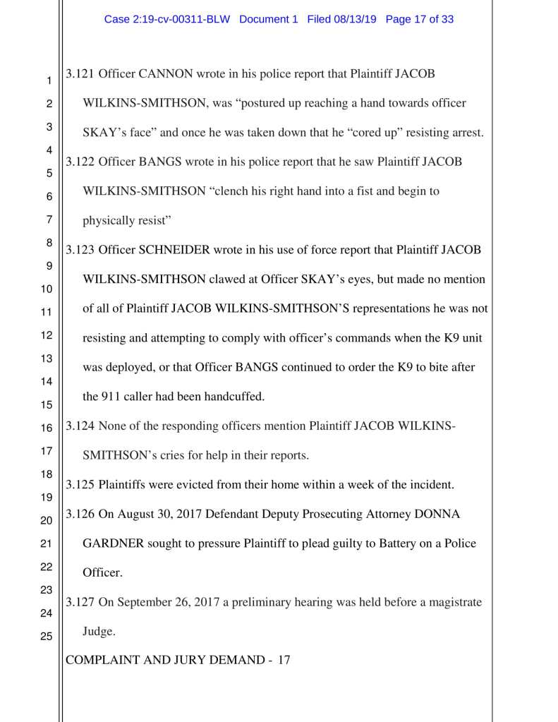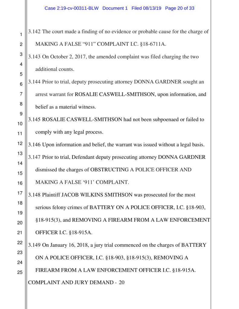 Don’t believe me though, read the entire lawsuit, against the following people, for yourself. Notice that Justin Bangs and Donna Gardner’s alleged behavior is so egregious they are not only being sued in their official duties as a police officer and prosecutor. They are also being sued personally, along with their spouses: