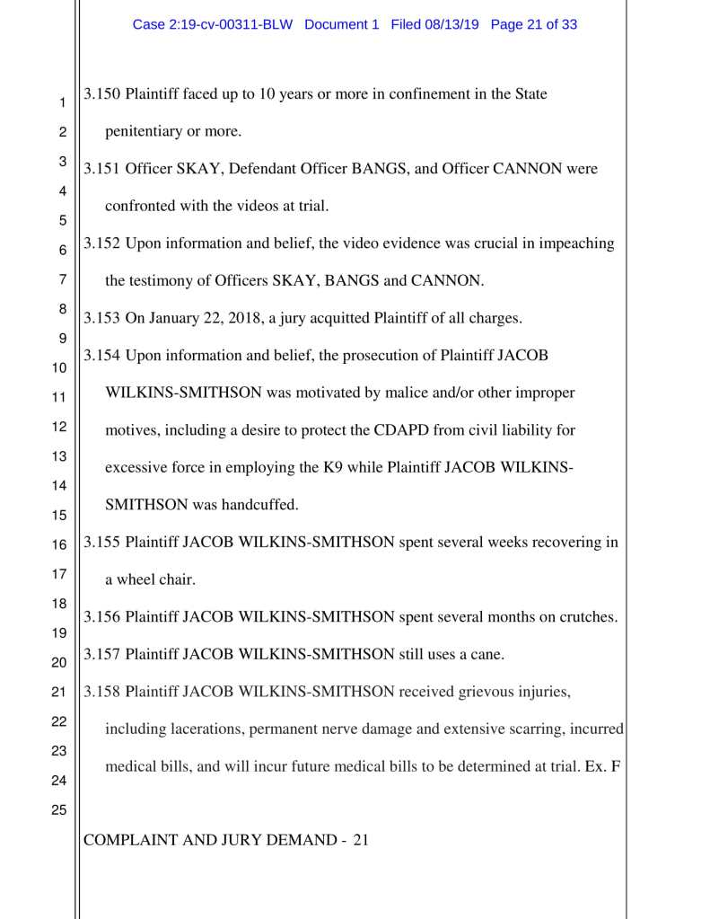 From there, the story plays out like a bad cop movie. It includes a visit from Officer Bangs to Jacob’s hospital room, presumably to convince Jacob he had done nothing wrong by sicking his dog on him. It also includes prosecutor Donna Gardner, who wants to be a judge herself, hiding evidence from a judge. Finally, it involves Jacob being found innocent of all crimes he was charged with.